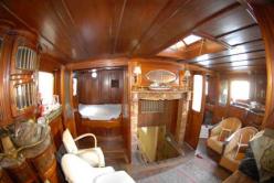 Constructeur : Belge Description : Bateau entierement ponté et recouvert en moitié par structure metallique pour un taud terrasse abritée. Entrée principale tiers avant donnant sur l'atelier ou se trouve le poêle à bois à récupération chaleur sur le réseau chauffage central. Une coursive tribord sépare l'atelier du salon et disitribue 2 grandes chambres. Du salon une petite coursive milieu distribue sur tribord une cuisine en U ouverte sur le salon par un passe-plat bar, sur babord une salle de bains et sur l'arrière, l'ancien logement avec 2 cabines dans ses boiseries d'origine. Niveau supérieur Poste de pilotage. Pic avant zone technique groupe electrogène. Caracteristiques : Construite aux chantiers Van Praet à Baesrode en 1933. Convertie en atelier bureau logement dans les années 1990 par un décorateur cinéma qui a aménagé un bateau lumineux, avec goût et beaucoup de bonnes idées, dans des matériaux de qualité. COT en cours (actuellement double taxation à 570 Euros /mois) sur emplacement calme et arboré avec accès voiture. Visible 93 sur rendez vous. Nombreuses photos sur demande. |