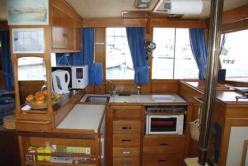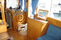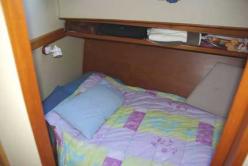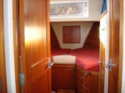 Constructeur : América Marine Description : Construit en 1980 chez Américan marine (Singapour) type grand bank Europa N°003. Avant : Cabine en V « propriétaire » avec coffres 6 tiroirs, penderie, coiffeuse; Cabine latérale bâbord couchette double, + 1 couchette amovible, penderie, coiffeuse; Salle de bains tribord, lavabo, grand miroir, WC , cabine de douche. Arrière : Cabine sous cockpit 2 hublots ouvrants, 2 couchettes doubles 140 x 200, penderie, Salle d'eau, lavabo, WC manuel. Central : Carré 8 personnes, 2 banquettes tissus alcantara bleu dont une en L, bar + nombreux rangements, Cuisine en L bâbord, Poste de pilotage complet avec table à carte tribord. Navire en trés bon état général. Caracteristiques : Homologué en 3 ème catégorie et armé en 5ème catégorie. Hélices tripales avec coupes orins. Equipement extérieur : Plate forme arrière (2007) échelle de bains, Passerelle hydraulique EUROMAR à télécommande faisant office de bossoirs, Table et chaises de cockpit teck, Douche de pont, 2 grands coffres, Mât de charge, 4 banquettes avec coussins sky, bimini, cagnards. Equipement intérieur : Télé, HiFi JVC avec répétiteur du son sur fly bridge, Four électrique, plaque 3 feux gaz, micro ondes, frigo 12 v SIDEX 130 L , congélateur 220 V. Electronique : Radar NM KODEN 300, Pilote CETREK 502 avec commande fly bridge, GPS KODEN KGP 98, Sondeur INCASTEC, Vhf NAVICO fixe + ICOM portable, Loch VDO, Alarme anti vol. Annexe EUROVINYL 285 +H.B. YAMAHA 4cv. Travaux récents : échange standard moteurs, coudes d'échappements moteurs en inox.Outillage et pièces de rechange. Tout le nécessaire et le confort pour la vie à bord. Bateau prêt à prendre la mer. PLACE DE PORT pour 2800 Euros/an avec parking voiture, réservée et surveillée.