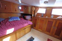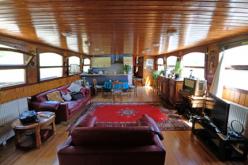 Constructeur : Hollandais Description : L'entrée cale se fait par une des 2 portes milieu bâbord ou tribord, qui desservent la terrasse de 100 m² et qui donnent directement dans la pièce séjour cuisine Américaine de 40,8 m² ou le plancher donne un vide sanitaire passage fluides de 1 m de haut et permet en ayant les pieds à hauteur d'eau d'avoir une vison sur l'eau que ce soit assis ou debout. L'entrée peut se faire également par une des 2 portes timonerie qui distribue sur l'arrière l'ancien logement du marinier, indépendant avec son Wc séparé et 1 salle d'eau douche et vers l'avant de la timonerie sur une pièce buanderie donnant vers le séjour. Vers l'avant du salon, 1 porte milieu étanche donne sur une coursive qui distribue 1 chambre triple, 1 chambre double, 1 wc indépendant, 1 chambre parentale avec bureau et sa salle de d'eau douche. Le pic avant est un local technique abritant la chaudière avec ses réservoirs et un groupe électrogène. Accès arrière pour salle des machines : moteur daf et groupe electrogène Etat intérieur et peintures extérieures en très bon état.