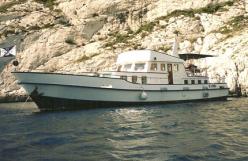 Constructeur : Hollandais Description : L'entrée peut se faire par une des portes de la timonerie centrale qui abrite la timonerie salon de pont avec son poste de pilotage, un carré banquette en U et la cuisine. Sous le salon pont salles des machines avec entrée extérieur tribord et sortie de secours. Vers l'avant salon avec en contrebas vers l'arrière salle de bains avec baignoire d'angle et en contrebas vers l'avant chambre propriétaire. Sous le salon espace cuves eaux usées et espace de stockage. De la cuisine vers l'arrière en contrebas cabine lit simple, salle de bain avec douche et wc. Sur roofs avant 2 terrasses bain de soleil. Terrasse arrière avec accès coqueron arrière (verin hydraulique gouvernail, chaudière et groupe electrogène) et accès plage arrière de bains repliable. Sur roof arrière terrasse avec toit fixe isolé et taud complet offrant une pièce supplémentaire de mi saison et accès vers flybride poste de pilotage bain de soleil. L'ensemble des ponts et terrasses est recouvert de Marinedeck. 4 compartiments étanches. Caracteristiques : Constuit à l'origine par le propriétaire d'un chantier Hollandais de remorqueur sur une forme de coque de remorqueur avec des épaisseurs comprises entre 10 et 14 mn et une superstructure de type yacht en 1994 et mis à l'eau en 2002. Aménagé de 2002 à 2005, avec les exigences techniques et sécuritaires de la marine marchande et le grand luxe des mégayachts, ce bateau est une alliance magnifique mariant le confort, l'autonomie et la solidité d'un bateau de travail. Mieux qu'un bateau neuf de série, ce bateau est unique et en parfait état . Il coûterait à construire maintenant dans les 2,5 Millions d'euros. Rapport d'évaluation : valeur de reconstruction 850.000 €, vleau minimum 700.000 € Armement maritime complet. Electronique : radar, gps, compas, 2 vhf, sondeur, pilote auto, cartographie. Annexe + 9.9 honda 4T, grue hydraulique, bossoirs, échelle de bains, radeau de survie, projecteur, compresseur, déssalinisateur, ect . Inventaire complet sur demande. Nombreuses photos sur demande. Visible 78 avec emplacement. BAISSE DE PRIX : 495.000 € L'avis de PENICHES BATEAUX LOGEMENTS : Le propriétaire agé s'en sépare. Opportunité unique ! |