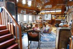 Constructeur : belge Description : L'entrée sur la péniche peut se faire soit au milieu sur tribord soit par une des 2 portes de la timonerie. De la timonerie vers l'arrière accès à l'ancien logement de marinier avec ses superbes boiseries d'époque (rare), comprenant un salon, une cabine lit et une salle une salle de bain avec sa baignore cuivre, lavabo et wc. De l'avant de la timonerie accès vers un premier niveau cale ou se trouve la cuisine salle à manger avec un volume cave en dessous pour stockage. Vaste salon lumineux avec ses sabords bronze verticaux et sa sortie vers la terrasse. Coursive bâbord distribuant dans l'ordre : une salle de douche et un wc séparé, une grande pièce bureau ouverte sur la coursive (pouvant être une chambre) , la chambre parentale puis dans le pic avant la cabine du mousse surélevée par rapport à la cale avec un lit podium , avec en dessous une zone technique pour groupe électrogène et chaudière. Bateau entièrement choupé au niveau du pont et des super-structures (facilité de mise en oeuvre des peintures) très bon état des peintures. Intérieur en très bon état, décoré avec goût dans une ambiance marine ( de nombreux meubles à vendre en supplément du prix de vente).