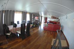 Constructeur : Français Description : L'entrée se fait par la terrasse avant de 60 m² de pleind pied avec la pièce à vivre principale de 60 m² regroupant l'espace cuisine bar et salon salle à manger. Un passage tribord se trouve une buanderie, une salle de bains avec douche et une chambre pleine largeur donnant par une baie vitrée sur une terrasse arrière de 40 m². Un escalier métal acier et bois permet d'accèder au niveau cale dans un salon lumineux de 50 m² avec cheminée bois foyer fermé et servant à distribuer vers l'avant une suite parentale pleine largeur avec sa salle de bains baignoire indépendante et sur l'arrière par une coursive babord, 2 chambres, 1 salle de bains douche, 1 chambre pleine largeur puis 1 local technique. 2 terrasses supérieures recouvertes lattes de bois exotique IPE. Caracteristiques : Construit en 1932 comme barge poussée citerne, cet ex - citerne a été converti en 2008 - 2010 en bateau logement de 280 m². Cet ex citerne possède de jolies formes, une rigidité structurelle supérieure comme ex bateau de travail, une qualité d'acier typique de ces années 30. Aménagé par artisan dans un esprit loft avec : ses surfaces vitrées, son bar cuisine ouvert sur le salon salle à manger, son escalier métal bois, sa décoration contemporaine avec ses murs et plafonds blancs et son superbe parquet intérieur en bois exotique IPE , ses terrasses. Certificat de bateau 2011. EXPERTISE PLAN DE SONDAGE / 2011 Etat d'entretien des peintures : Très bon. Redevance de stationnement sans titre à 1238 € / mois. Accord mairie. COT EN COURS Conviendrait pour une grande famille ou un usage reconversion en bureaux. Photos des autres pièces sur demande.