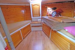 Constructeur : HOLLANDAIS Description : L'entrée se fait par le cockpit terrasse arrière et donne accès à l'ancien logement avec son petit salon et avec 2 banettes 1 personne sous cockpit. Une coursive Bâbord bibliothèque distribue la salle des machines et la grande pièce séjour de 26 m². Une coursive tribord sépare sur tribord une cuisine équipée cuisine et en face un WC indépendant et un salle de bains en teck. Vers l'avant 2 chambres de taille identique séparé par une cloison milieu qui peut être enlevé pour faire une grande chambre. Cloison étanche peak avant avec cuves eau et fuel + mouillage. Bateau très bien entretenu intérieur et peintures extérieures.