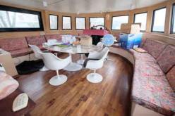 Constructeur : Français Description : L'entrée peut se faire soit par la terrasse avant ou par porte tribord arrière. Entrée principale avec espace d'accueil, puis blocs wc, puis vaste espace bureaux escamotables pouvant se transformer en espace de réception avec sur l'arrière un accès supérieur au vaste espace carré poste de pilotage du bateau, point le plus haut du bateau avec une vue sur 360°. 2 escaliers permettent d'accéder au niveau cale dont 1 magnifique escalier principal en verre. Le volume inférieur comprends : 1 cuisine, 3 cabinets dentaire en espace semi ouvert, 1 salle d'eau wc , un local imagerie, un laboratoire de prothèses et via une coursive séparant le laboratoire une zone privé d'habitation avec une grande chambre pleine largeur puis une salle de bains avec baignoire dans le pic avant. Cet espace inférieur est facilement modulable après travaux de conversion et enlèvement des équipements dentaires (non vendu dans le prix) pour transformation en bateau à usage logement ou E.R.P ou activité commerciale de type chambres d'hôtes, bureaux, etc. Accès à la salle des machines par trappe arrière. 350 m² : pont supérieur 165 m², terrasse 30 m², coursives 12m², pont inférieur 140 m², timonerie 20 m². Très beaux matériaux d'aménagement et parquets teck et okoumé. Bateau très lumineux sur ces 2 niveaux avec ses baies vitrées double vitrage, pont supérieur et ses grands sabords cuivre + hublots cuivre au pont inférieur. Ce bateau est en très bon état aussi bien intérieur qu'extérieur, léger rafraîchissement à prévoir, après 23 ans d'activité d'implantologie dentaire Caracteristiques : Construit en 1955 par le chantier de l'Escaut à Neuville Saint Rémy et aménagé entièrement en 1996 avec superstructure pleine largeur dans les règles de l'art par un chantier naval réputé, sans limite de budget. Plans de construction complets disponibles. Ce bateau est naviguant, installations faites par chantier naval. Certificat de bateau motorisé 2017 validité 2025, à faire prolonger pour dix ans en même temps que le futur plan de sondage de coque soit 2025. Expertise plan de sondage 2009, le vendeur garanti sa coque par une sortie d'eau lors de la vente, expert au choix de l'acheteur. Carénage 2009, la coque a été shoopée (protection anti-corrosion par métallisation ou pulvérisation à chaud de zinc). Emplacement sur port privé sur duc d'albes, avec 2 passerelles, 4 place de Parking, Bip d'accès, alarme et télésurveillance. Emplacement privé avec contrat d'amodiation sur 20 ans (signé en 2003, reste 4 ans) à 215.000 €, ce qui revient à 895 € par mois, ce qui n'est pas cher pour la sécurité et les services d'un port privé. Charges complètes 1.300 € par mois incluant : emplacement 895€, parking 180€ , charges 225€ Visite sur rendez-vous, plans et 41 photos disponibles. L'avis de PENICHES BATEAUX LOGEMENTS : la plus grande surface habitable que l'on peut obtenir sur une péniche de type Freycinet, réalisée dans les règles de l'art. Espace facilement modulable pour agrandir l'espace habitation. Belle esthétique de coque et très bonne distribution de l'espace.