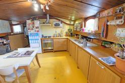 Constructeur : Hollandais Description : L'entrée principale se fait par l'avant par un escalier encastré et distribue le salon cuisine. A droite de l'entrée une porte étanche donne dans le pic avant (non aménagé) assez grand pour être transformé en chambre supplémentaire. Un coursive tribord distribue une chambre, une salle de bains avec baignoire d'angle, un wc indépendant, puis un atelier pleine largeur ou se trouve la cuve de 2400 L , un établi et un espace de stockage. 2 portes étanches séparent la salle des machines et permettent l'accès de plein pied avec la chambre arrière aménagé dans les formes du bateau et qui communique avec la timonerie. Nombreuses fenêtres ouvrantes double-vitrage de menuisier en bois exotique. Terrasse de 24 m² devant timonerie accessible par marches sur denbords. Très bon état intérieur et des peintures extérieures. Caracteristiques : Construit en 1923 en Hollande au chantier Wolthuis à Veendam et aménagé à neuf année 2000. Ligne d'arbre refaite à neuf en 1998. Toit en V avec les anciennes écoutilles rénovées + isolation + bâche de couverture Planchers réalisés démontables, permettant l'accès au fond entièrement traité anti-rouille. Expertises 2006 et 2016, coque en partie doublée, fortes épaisseurs, travaux réalisés conformément aux prescriptions. Hauteur sous barrots entre 1,90 m sur les côtés et 2,40 m au centre. Certificat de bateau de plaisance valide et valable jusqu'en 2026. COT à 120 € par mois sur très belle zone champêtre sans vis à vis à 40 kms de Paris (40 mn en voiture et une heure en RER D), 2 écoires et 1 passerelle. L'avis de PENICHES BATEAUX LOGEMENTS : De belles formes de coque, un vrai bateau naviguant avec une taille idéale pour naviguer sur tous les canaux, aménagé avec des solutions simples et efficaces. Un des plus bel emplacement au Sud de Paris avec un prix de vente raisonnable au vu de la qualité du bateau.