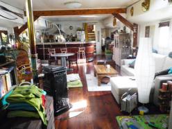 Constructeur : Belge Description : L'entrée se fait par une des 2 portes de la timonerie qui distribue l'ancien logement arrière avec son salon sa cabine double et sa de bains douche et par une escalier babord le logement principal. Au premier niveau de l'escalier l'ancien petite pièce logement avant servant de rangement; En dessous de ce logement se trouve la chambre parents accessible par le niveau bas de la cale. Grande pièce salon avec cheminée cuisine Américaine et escalier d'accès à la terrasse extérieure qui possède 2 niveaux. Coursive centrale distribuant sur babord une salle de bains baignoire et une chambre enfant et sur tribord un cellier buanderie et une chambre enfant. Atelier de 10 m de long soit 50m² non isolé sous écoutilles pouvant être aménagé. Pic avant baille à chaine. Pièce à vivre lumineuse avec sa baie zénithal et ambiance chaleureuse. Caracteristiques : Jolies formes de coque du chantier De Watcher à Boom (belgique ) de 1923. Réaménagée fin des années 80, ce bateau a bénéficié d'améliorations et d'un entretien constant par son actuel propriétaire. Expertise et travaux de doublage du fond en 6mn en 2000. Expertise et travaux de doublage formes arrières en 6 mn en 2011 Certificat de bateau motorisé 2011. COT à 780 € par trimestre, 91 proche commerces et transport, à 20 mn de paris par RER. Très bon rapport qualité prix , studio arrière indépendant pouvant être loué et potentiel d'aménagement de la pièce atelier à votre goût. Nombreuses photos sur demande. Visite sur rendez vous.