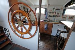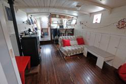 Constructeur : Hollandais Description : L'entrée se fait par porte tribord dans le cockpit arrière, ou se trouve le poste de barre avec un très beau macaron en bois, les trappes d'accès à la salle des machines et une porte vers coqueron arrière pour stockage. Le volume principale est composé d'un salon avec poêle à pellets et une cuisine Américaine avec bar. Nombreux rangements ouverts ou fermés sous les plats bords La coursive tribord distribue un wc indépendant avec lave mains et une salle d'eau refaite en teck, un local technique (stockage et chauffe-eau) et une cabine lit double pleine largeur, un bureau sur tribord de la coursive. A l'avant se trouve le pic avant baille à mouillage et stockage accessible par trappe extérieure. La hauteur sous barreaux varie de 2 m à 2,20 m sauf chambre avant plus basse (qui pourrait être modifié en hauteur). Très bon état des peintures intérieures et extérieures, le tout peint en blanc. Fonds avec planchers démontables + trappes de stockage. Caracteristiques : Construit en 1904 chantier naval de Veendam, Pays-Bas. Le bateau a gardé son gréement dormant, ses voiles de tjalk traditionnel ainsi que ses 2 dérives relevables par treuils. Dernière expertise plan de sondage 2019, facture de 21.802 Euros. Certificat de l'union du 30/11/2020 valable jusqu'en 2029 (prochain expertise), autorisant le bateau à naviguer. Immatriculation Française. Nombreux plans et photos supplémentaires sur demande COT 92 à 890 € par mois + 1 place de parking L'avis de PENICHES BATEAUX LOGEMENTS : Très belle esthètique de coque, pour les amoureux de tjalk ayant gardé leurs gréements d'origine. Une taille idéale à la fois pour naviguer facilement sur tous les canaux et habiter dans le confort d'un appartement de 60 m². Acheté en 2009 par son actuel propriétaire et amélioré (électricité + convertisseur, wc et douche, poêle) refaits à neuf . Bon rapport surface qualité prix pour des primo accédants et : Un vrai bateau ! BAISSE DE PRIX à 275.000 € |