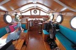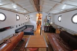 Constructeur : Hollandais Description : L'entrée se fait par l'arrière de la timonerie en teck et ouvre sur un carré avec second poste de pilotage. Un escalier colimaçon distribue le niveau cale avec 2 salleS de bains dont 1 avec baignoire, un vaste salon sur 2 niveaux avec une cuisine équipée et 3 chambres dont 1 pleine largeur + 1 lingerie Nombreux hublots cuivre et boiseries Pic avant atelier accessible par porte étanche Salle des machines spacieuse peinte en blanc avec accès sur pont arrière. Double poste de pilotage. Bossoirs + canot de sauvetage bois à clins Armement complet pour naviguer. Caracteristiques : Construit en Hollande en 1897, j'ai vendu ce bateau il y a 17 ans aux actuels propriétaires qui l'ont maintenu en très bon état et amélioré au fil du temps. Expertise plan de sondage mars 2019, fond doublé sur 80 m² en 2019 Expertise à flots mars mars 2019 et attestation de réalisation des prescriptions de l'expert COT 92. Nombreuses photos sur demande. L'avis de PENICHES BATEAU LOGEMENTS : un très beau bateau avec un volume habitable exceptionnel du fait de sa largeur de 5 m, idéal pour naviguer et habiter à l'année. Décoré dans une ambiance marine de très belles boiseries sculptées, il est en très bon état et équipé de matériels fiables |