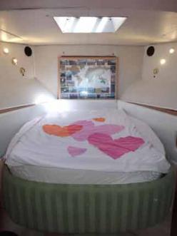 3 cabines doubles : - une grande cabine lumineuse à l'avant avec lit ovale, de nombreux rangements et une lucarne au plafond - une grande cabine à l'arrière avec penderie - une petite cabine avec 2 lits superposés et rangements