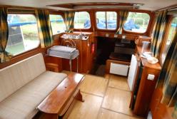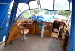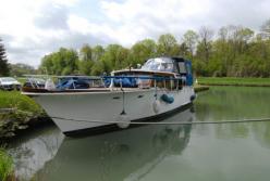 Constructeur : Hollandais Description : L'entrée se fait par la terrasse timonerie pleine largeur qui peut être entièrement fermé par un taud pouvant rester en place en navigation. Vaste carré salon avec pilotage intérieur, au dessus de la salle des machines. En contrebas vers l'avant, wc indépendant babord puis cuisine babord et en face carré convertible en lit 2 places. Chambre lit double dans pointe avant. Sur l'arrière du salon en contrebas vaste cabine propriétaire pleine largeur avec salle de bains douche indépendante. Superbes menuiseries en acajou massif du chantier Klaassen. Tirant d'air : mini+2.40 m ,en configuration marche avec tauds+ 3.35 m idéal pour canaux Hauteurs intérieures : 1.85 m chambre ,1.95 m salon, 1.92 m carré avant. Bateau en trés bon état intérieur et extérieur. Caracteristiques : Vedette Hollandaise de type SUPER VAN CRAFT du chantier naval KLAASSEN (NL) de 1968. Construction à bouchains ronds, en acier, superstructure en acajou et ponts en teck. Immatriculation Française. Expertisé en 1999, 2004,2009 par le même expert; entièrement repeint en 2009. Ellectricité neuve : tableaux 24/220 V , chargeur convertisseur, transformateur d'isolement, coupes batteries, batteries. Chauffage central neuf. Grue hydraulique neuve pour moto sur plage arrière. Carénage, joints pont, et boissesries extérieures remises à neuf et passées au D1, D2. Ce bateau a une histoire. Il avait 1000 heures, quand le propriétaire l'a acheté en 1998. Ils ont parcouru les canaux de France, de Belgique, des Pays Bas, ainsi que le Rhin et le Neckar en Allemagne.