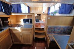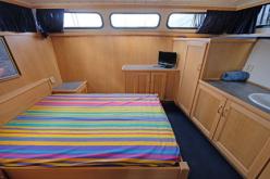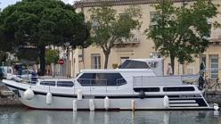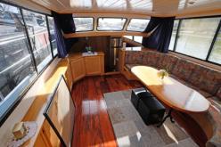 Constructeur : Hollandais Description : Entrée bâbord par terrasse arrière, poste de pilotage abrité par taud neuf de 2019. Vaste salon avec carré banquette semi circulaire + table, au-dessus salle des machines. De nombreux rangements profonds sous plats-bords et sous banquette. Vers l'avant en contrebas sur bâbord carré table convertible en lit et sur tribord cuisine en L équipée : grand frigo avec congélateur 220 V, évier, 3 feux gaz, four électrique, micro-ondes. Chambre dans la pointe avant avec lit podium sur bâbord, rangements sous podium + assise. Trappe d'accès bail à chaîne. Trappe d'accès cuisine à cale avant pour rangements, accès propulseur d'étrave et machine à laver et à sécher le linge. Dans salon, trappe sur vérins avec allumage automatique pour descente escalier salle des machines. Vers l'arrière, coursive centrale distribuant sur tribord chambre avec lits superposés, sur bâbord wc lavabo et rangements puis porte d'accès chambre propriétaire pleine largeur avec lit à la Française, grande penderie, armoires, lavabo et accès douche, rideaux et moustiquaires à chaque fenêtre. Boiseries chêne clair donnant beaucoup de luminosité, parquets massifs sur CP marin. Fenêtres et hublots sur profils aluminium. Isolation laine de roche jusqu'au pont le plus bas de la coque, isolation refaite 2019 entourage fenêtres du carré, très bonne isolation phonique des planchers salle des machines. Très bon état intérieur, aspect neuf et très bonne état des peintures extérieures. Caracteristiques : Construit en Hollande au chantier de Mépel en 2001 et amélioré par son propriétaire actuel, avec 32.800 € de travaux 2019 (isolation, électricité, injecteurs et pompe moteur, taud, chauffage air pulsé). Immatriculation fluviale Française et permis de navigation, catégorie de conception C pour 8 personnes. Vendu avec armement complet et VHF, projecteur, feux de route, antenne TV, échelle inox d'accès plateforme de bains, bossoirs inox, passerelle de débarquement inox, gilets, extincteurs. Vignette fluviale VNF 520€/an, assurance 720€/an, COT 60 : 520 €/an, le bateau n'est pas surévalué par son emplacement. Nombreuses photos sur demande (lien contactez nous au bas de cette page) VENDU L'avis de PENICHES BATEAUX LOGEMENTS : Aménagements professionnels de grande qualité donnant à ce bateau une très bonne impression et sentiment de robustesse. Excellent état d'entretien et de présentation. Solutions techniques retenues simples et fiables. Grande largeur de 4,60 m donnant une excellente habitabilité pour cette longueur. Mieux qu'un bateau neuf, un bateau rôdé prêt à partir. Idéal pour songer à habiter à l'année et/ou naviguer facilement. |