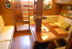 Constructeur : Français Description : Voilier avec un très beau volume habitable du fait de sa grande largeur et de son plan d'aménagement intelligent ou aucune place n'est perdue. Entrée par panneau coulissant, à gauche cuisine en U équipée : évier, four/réchaud sur cardan, groupe de froid, en face grande table à cartes ouvrante pour rangement cartes et panneau de contôle 24V. Vers l'arrière sur tribord salle d'eau douche et chambre propriétaire avec grand lit dans le sens de la largeur + lit d'appoint et nombreux rangements. Sous le lit accès aux cuves et au presse étoupe et sur cloison avant accès au compartiment moteur. Grand carré en U et banquette simple en face Vers l'avant couchette simple sur bâbord et atelier et stockage sur tribord. Caracteristiques : Coque Type Cocaïne construite en 1985 par le chantier PINTA de la Rochelle sur plan Michel Joubert avec le matériau le plus solide à l'époque (sandwich airex), puis aménagée par son propriétaire pendant 5 ans. Mis à l'eau en 1991 et après 14 ans de navigation mer; en 2005 le bateau s'installe en région Parisienne. Expertise 2012. Emplacement idyllique à 100 € par mois dans cadre champêtre. Le bateau actuellement désarmé mer est plus vendu comme bateau logement mais peut repartir en mer. L'équipement voile (mat alu, 2 voiles Av sur enrouleur, 1 Gv) feront éventuellement suivant l'acheteur, l'objet d'une vente séparée. Nombreuses photos sur demande. L'avis de PENICHES BATEAUX LOGEMENTS : un voilier très robuste, un aménagement bien pensé et bien réalisé, un bateau très habitable pour sa taille pouvant très bien faire une habitation permanente pour un coût très raisonnable. |